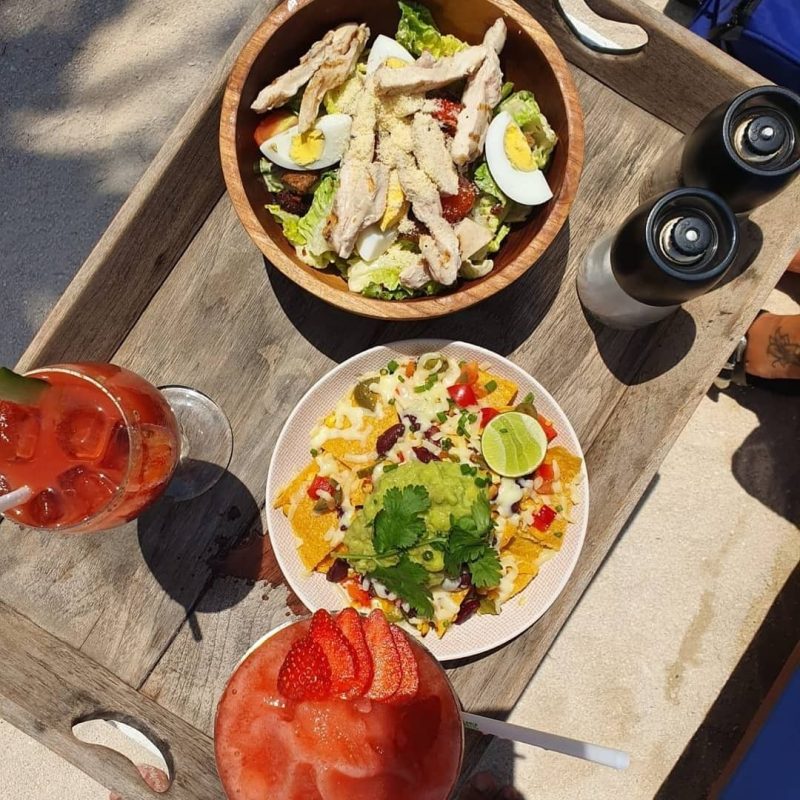 As the turquoise water kisses the shore and laps the limestone cliffs, the sky flirts in a magnificent array of deep oranges, pinks, yellows and lilacs. With a frozen coconut daiquiri in hand, a fork stuck into mouth-watering prawns, and chilled-out coastal tunes oozing from the speakers, guests at Sandy Bay Beach Club are encouraged to unwind, dig their toes into the sand, and witness the sun melt into the ocean in a spectacular explosion of colour.
